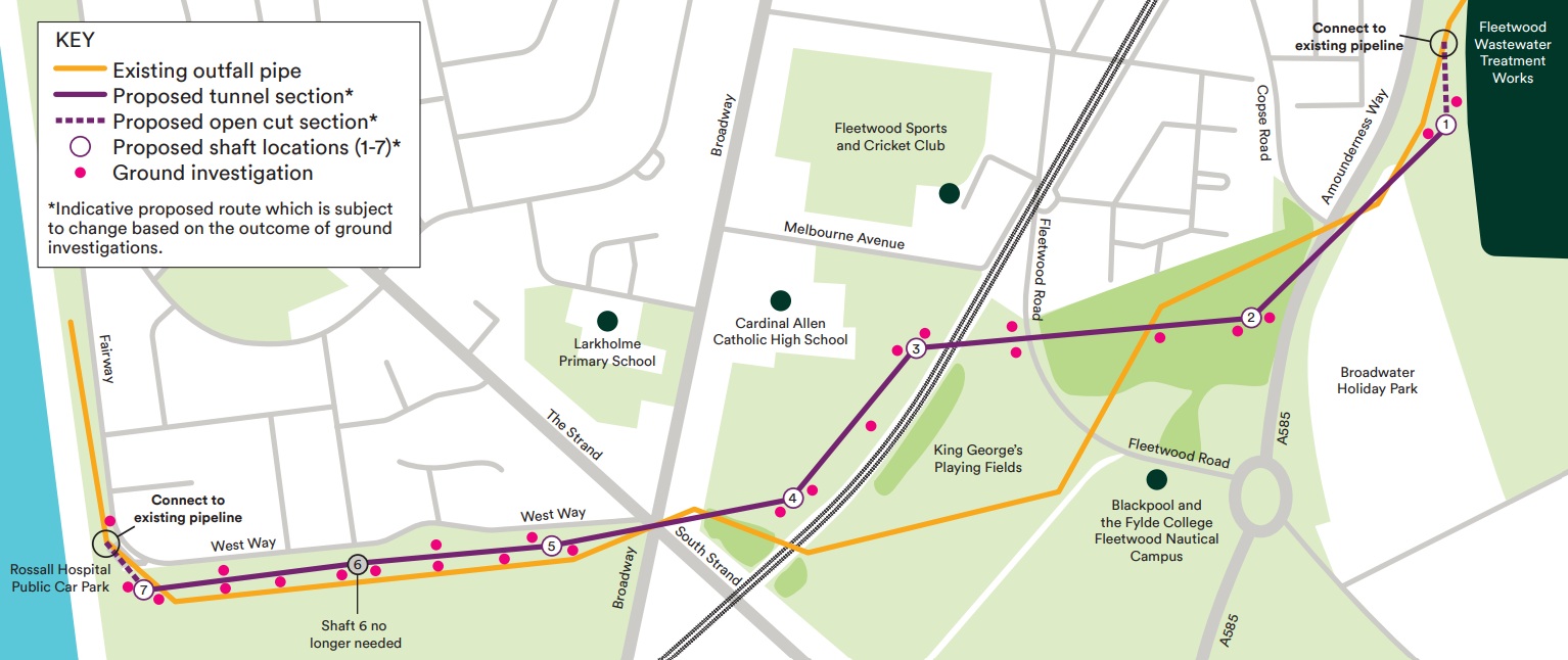 The new pipeline will extend from Fleetwood Wastewater Treatment Works to the promenade off Westway and will improve the resilience of the network across the Fylde and Wyre coast. It will take treated wastewater from Fleetwood Wastewater Treatment Works to the promenade where it will connect into the existing outfall pipe.